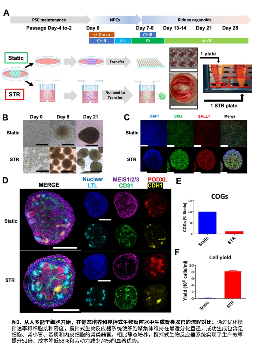 该研究提供了一个成本低、可规模化、符合cGMP转化潜力的肾类器官平台,为药物筛选、疾病建模及最终实现生物人工肾迈出了关键一步。