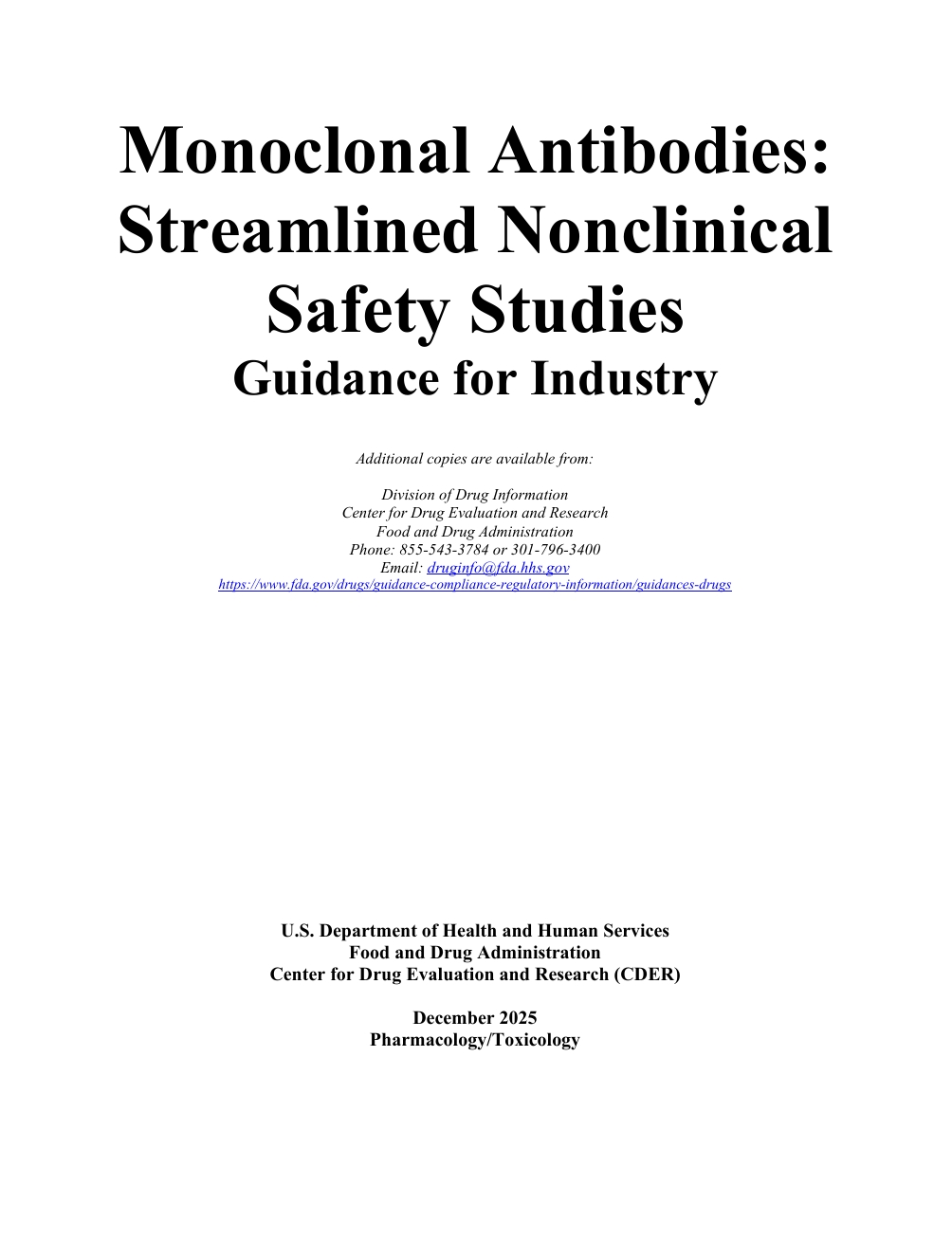 近日,美国食品药品监督管理局发布《单克隆抗体:简化的非临床安全性研究(草案)》。该草案在推进"3R原则"的同时,明确将新方法学(NAMs)纳入简化非临床研究的核心证据体系,为其在药物安全性评价中的系统应用提供了清晰的监管路径。